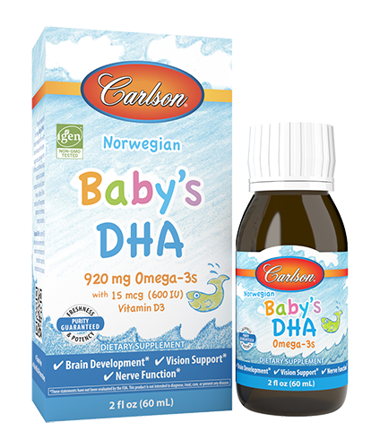 The beneficial omega-3 DHA supports healthy brain, vision, and nervous system development in growing children and is especially important during their first two years, as their brains nearly double in size. Unfortunately, many infants don't get adequate amounts of DHA through breastfeeding or formula alone. Baby's DHA is a great way to fill this nutritional gap and ensure your children receive the high quality DHA their growing bodies – and brains – need.